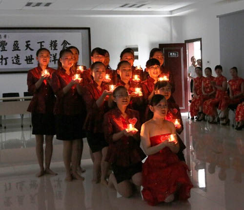 该支部下辖五大部门被分成四支参赛队,即董事长办公室代表队、培训学校及证劵事务部代表队、荆门逸居酒店前厅队、荆门逸居酒店餐饮队。按照抽签顺序,首先出场的是培训学校及证劵事务部代表队,别看这支只有7人的参赛队,他们巧妙利用歌曲两段式重唱的特点,将整个手语舞以前后两种不同的风格呈现在观众面前,配合声光舞相互融合,令众人眼前一亮。随后出场的荆门逸居酒店前厅队,全队以大红旗袍装亮相舞台,通过舞蹈的灵活变换,摆出“丰”字队形,将她们的参赛主题“大地的丰收·感恩洋丰”诠释地淋漓尽致。而荆门逸居酒店餐饮队则以“点亮心灯·感恩生活”为主题,采取回归本寓的形式,借助蜡烛照亮心形,表达感恩。最后出场的是董事长办公室代表队,不敢说压轴,但出场式的别出新意瞬即博得满堂喝彩,整齐的队形,规范的动作,也绝对不逊于其他同事,值得一提的是,他们也是四支队伍中参赛率最高的,这靠的是团队意识和不甘示弱的集体荣誉感。