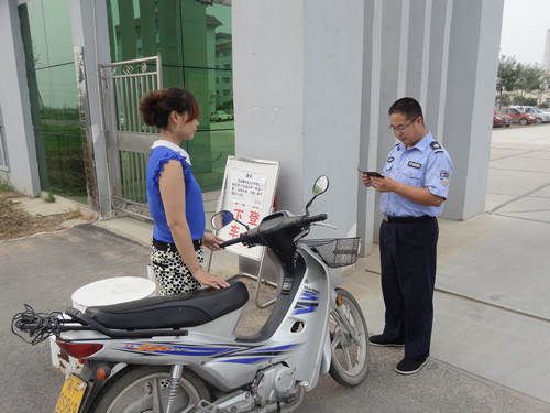 本网讯 近日,河北新洋丰公司开展摩托车整治工作,提高员工交通安全意识,进一步规范公司职工及劳务工的摩托车管理。制定整治方案、对各单位摩托车情况进行摸底、统计证件不全的摩托车、召开安全宣传专题会、不定期检查督办。图为保安检查摩托车证件