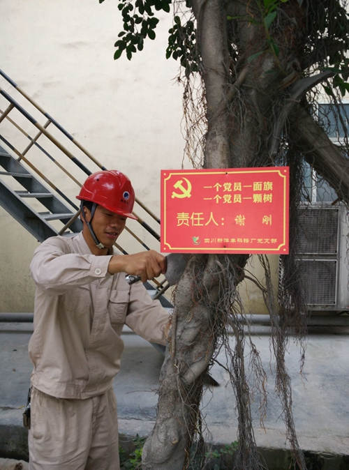 近日,四川新洋丰磷铵厂在全体党员中开展了“‘树’形象亮身份”活动,将厂区内的80颗榕树全部细化给每个党员,由党员负责浇水、修剪等日常维护工作,并在榕树上悬挂责任牌,接受员工监督。