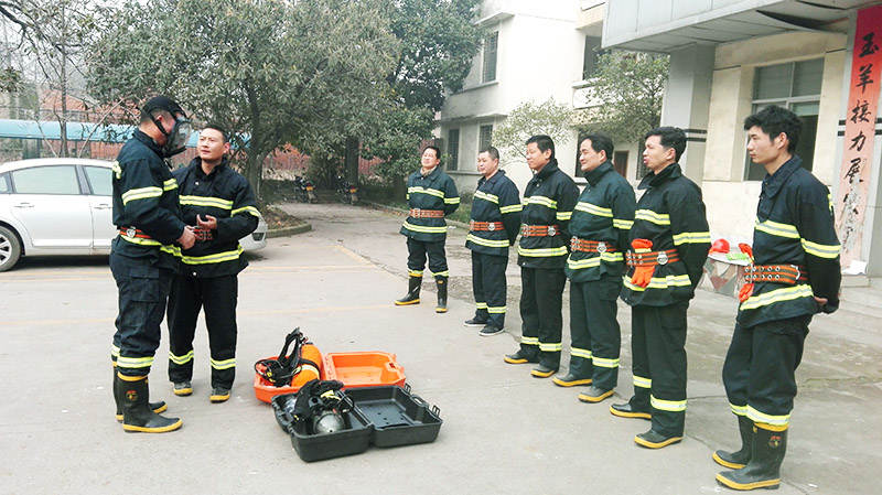 此次培训内容主要包含:消防水带的盘卷、收放及安装喷头等系列动作、空气呼吸器佩戴、消防战斗服穿着等。期间,该公司消防主管袁辉逐一进行了专业技术指导,并重点对员工训练操作的不规范动作和流程进行了现场纠正。