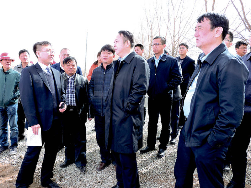 松原市委书记李相国(前排中)在扶余市市长刘永德(前排右)的陪同下到吉林新洋丰工地现场调研