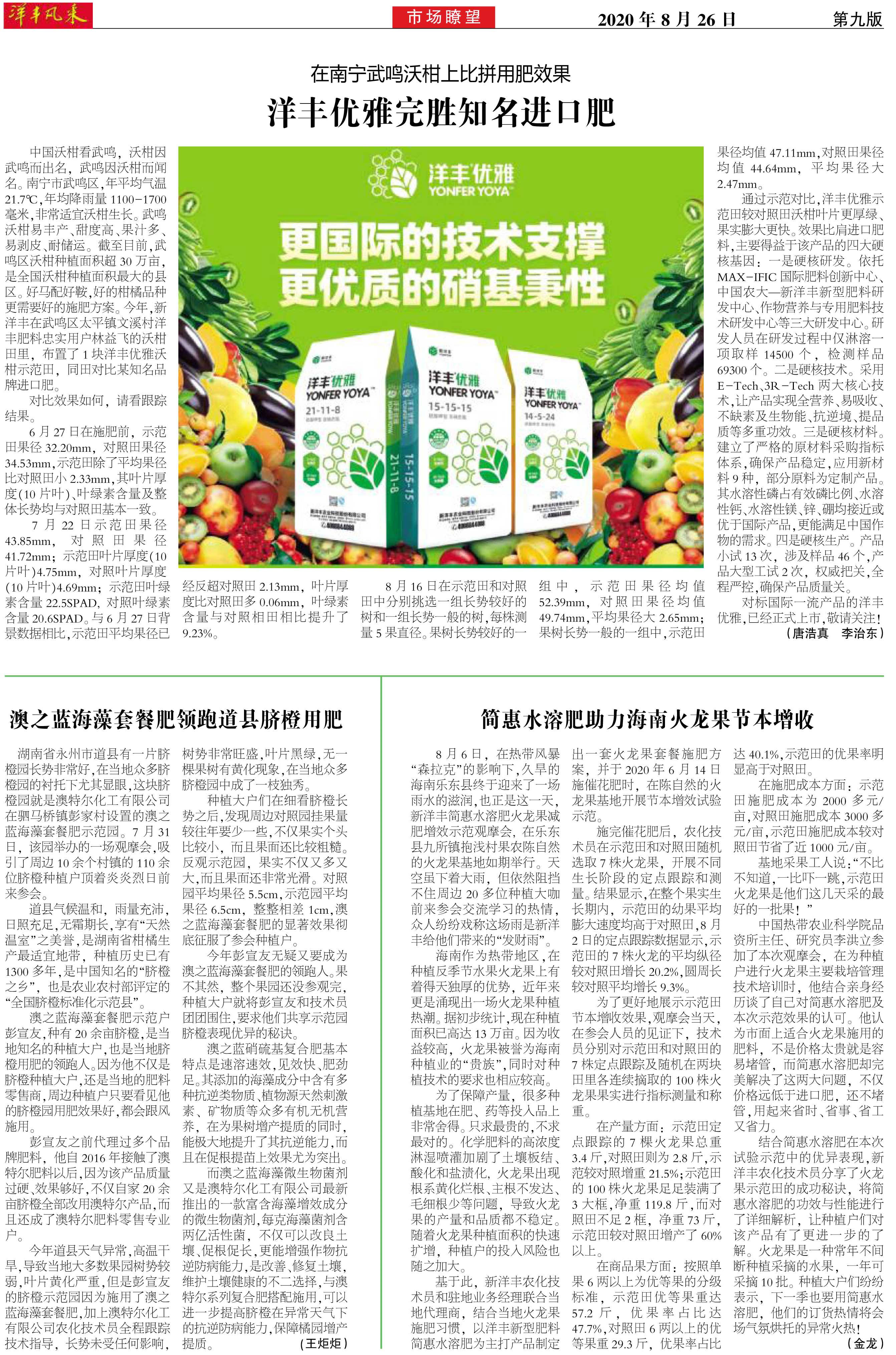 在南宁武鸣沃柑上比拼用肥效果 洋丰优雅完胜知名进口肥