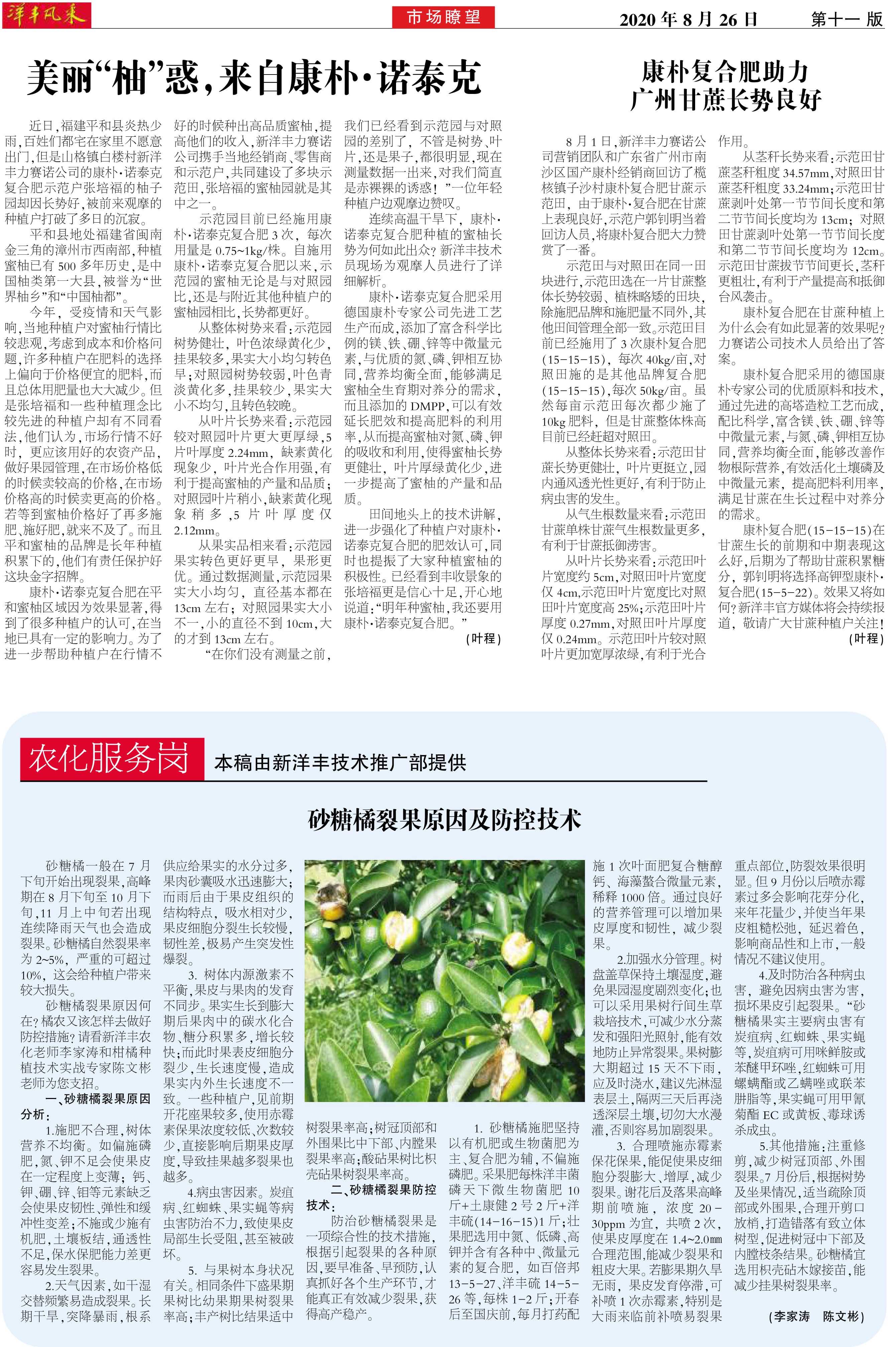 康朴复合肥助力广州甘蔗长势良好