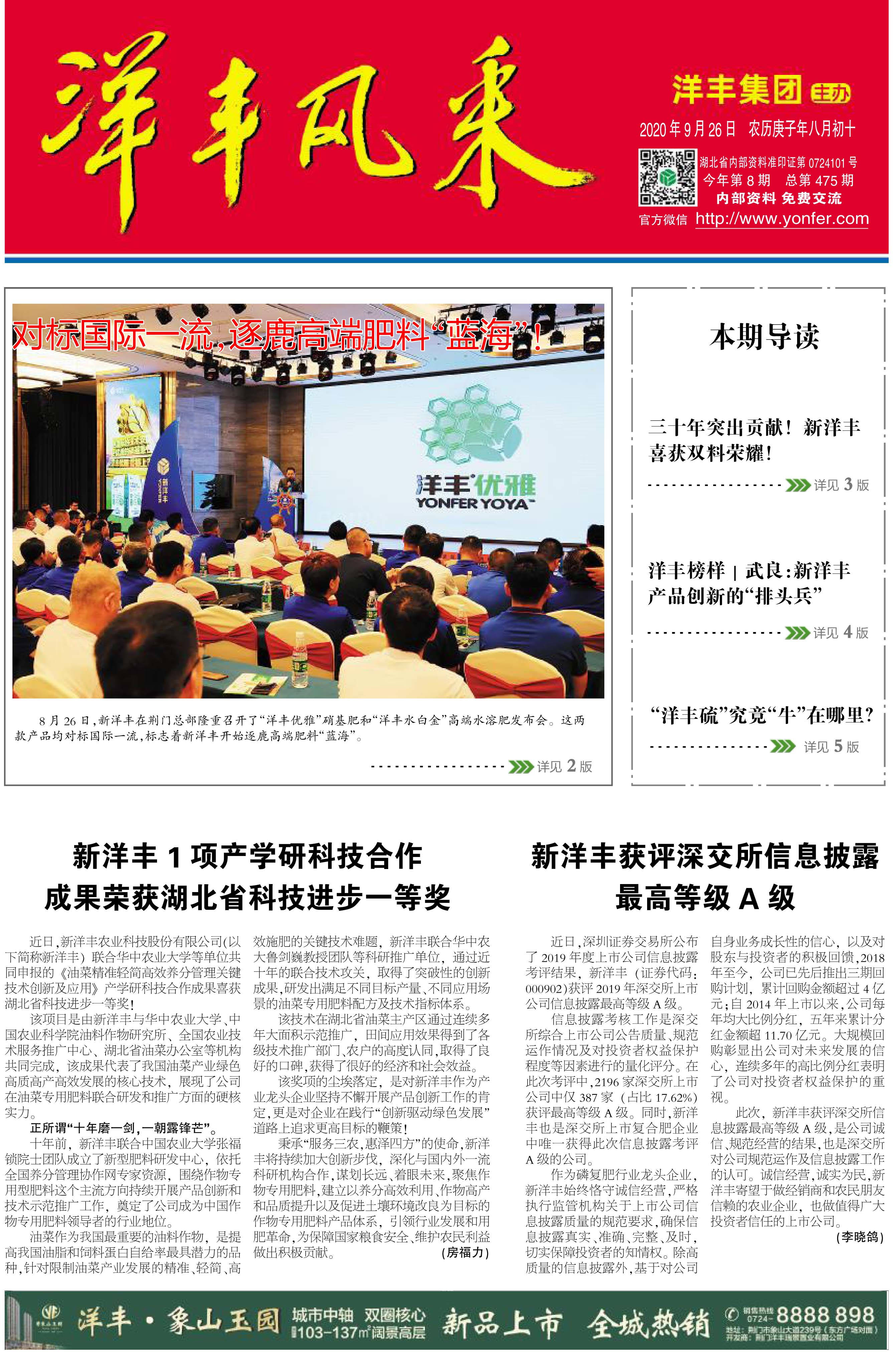 新洋丰1项产学研科技合作成果荣获湖北省科技进步一等奖