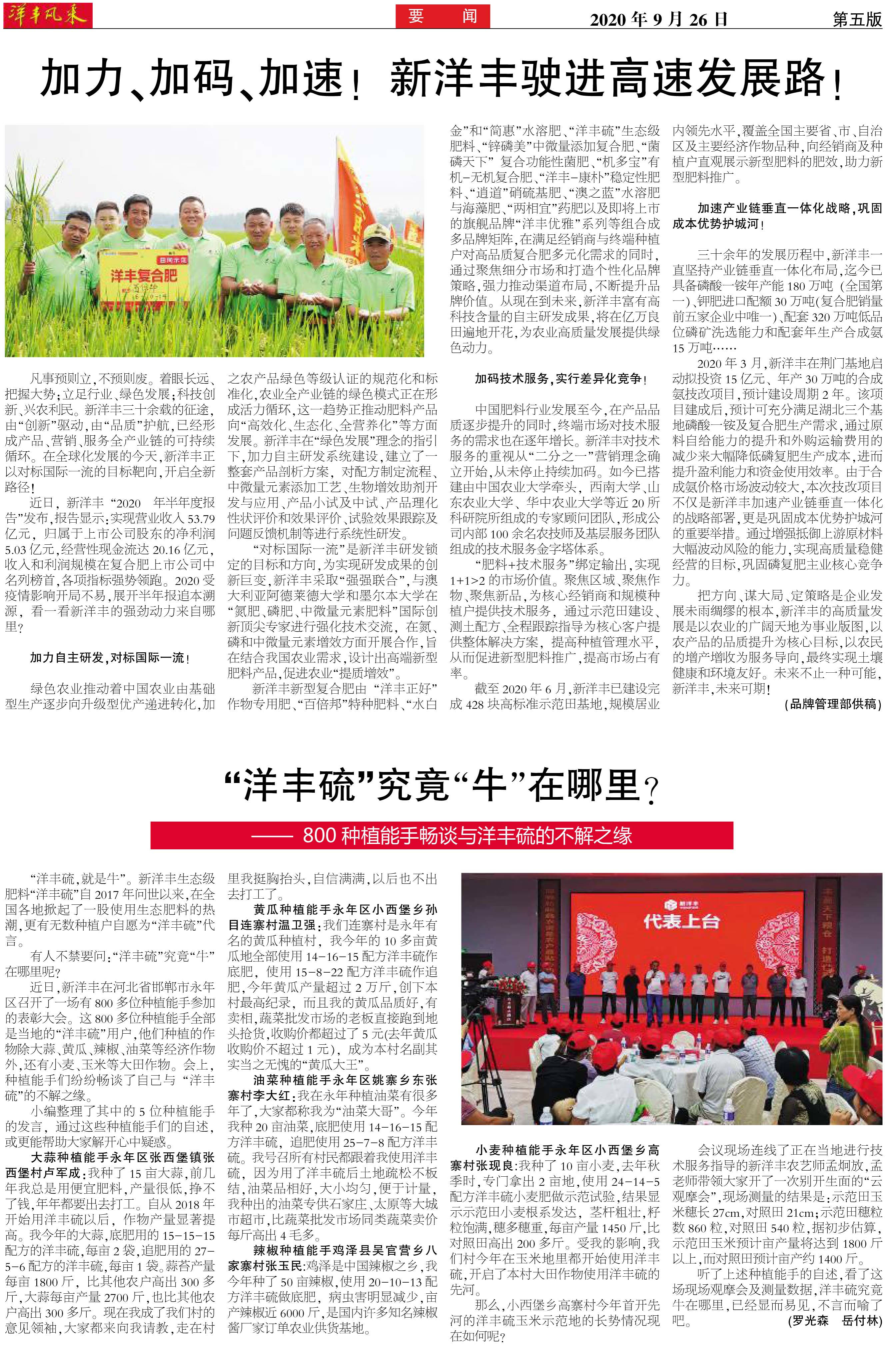 加力、加码、加速!新洋丰驶进高速发展路!