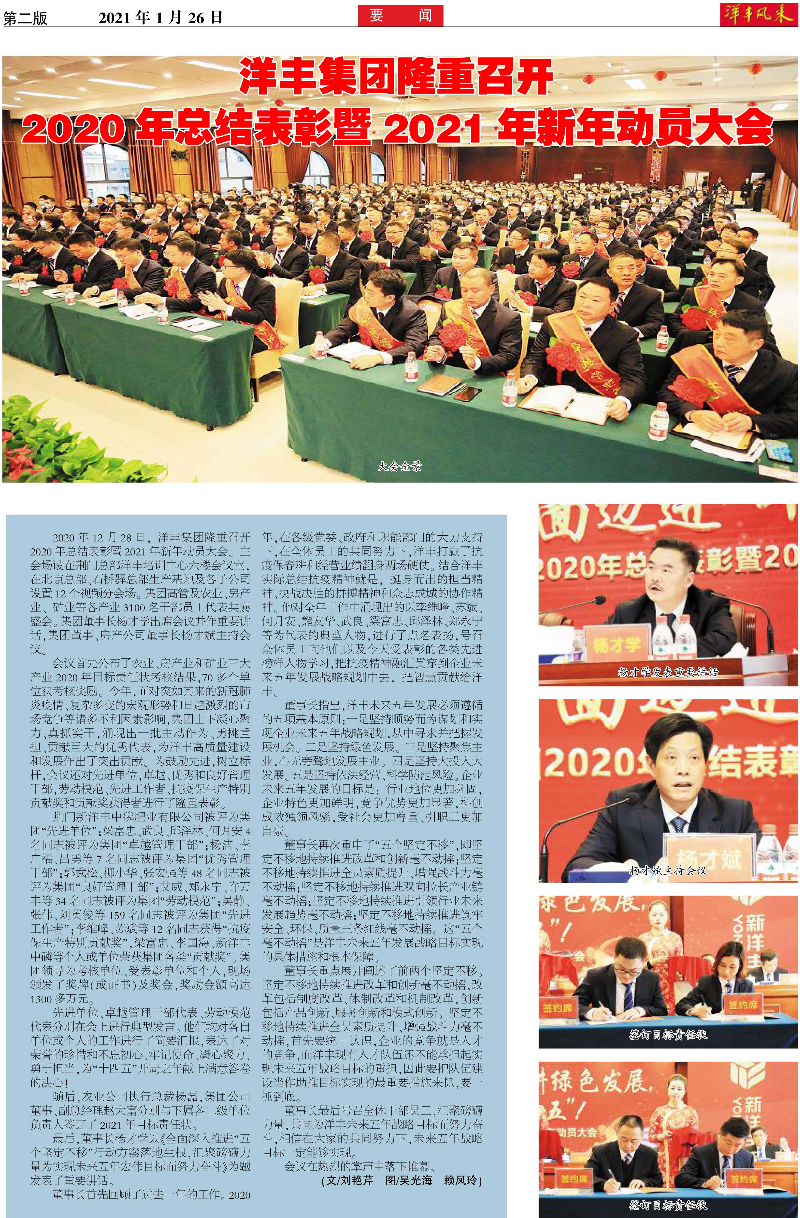洋丰集团隆重召开2020年总结表彰暨2021年新年动员大会