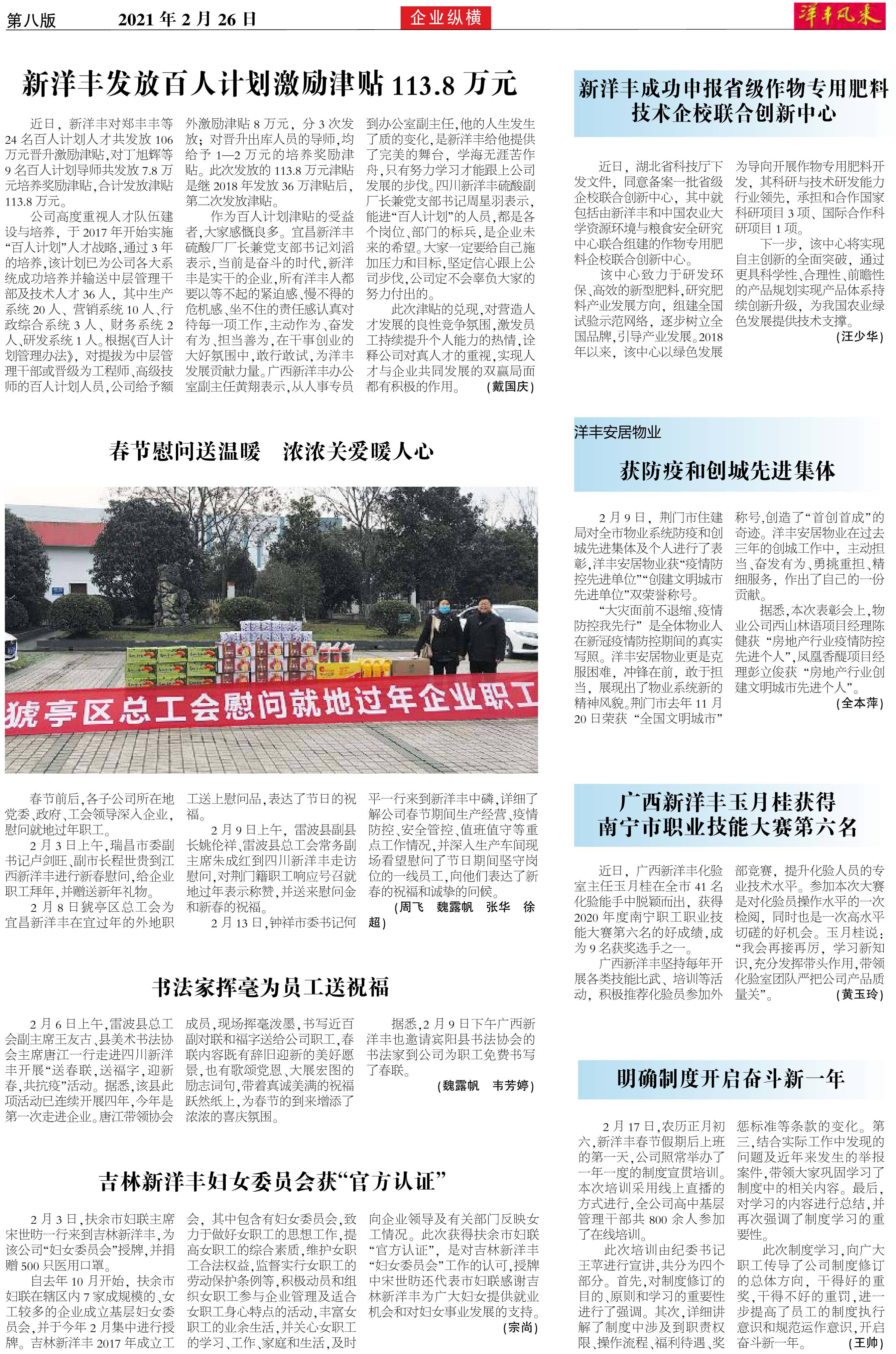 新洋丰发放百人计划激励津贴113.8万元