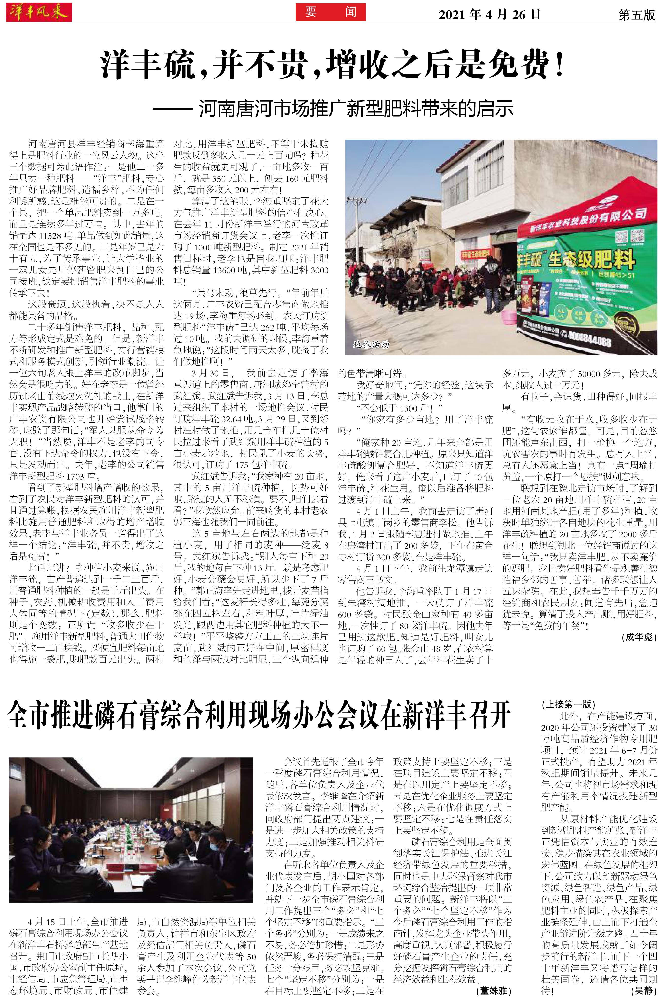 洋丰硫,并不贵,增收之后是免费!——河南唐河市场推广新型肥料带来的启示