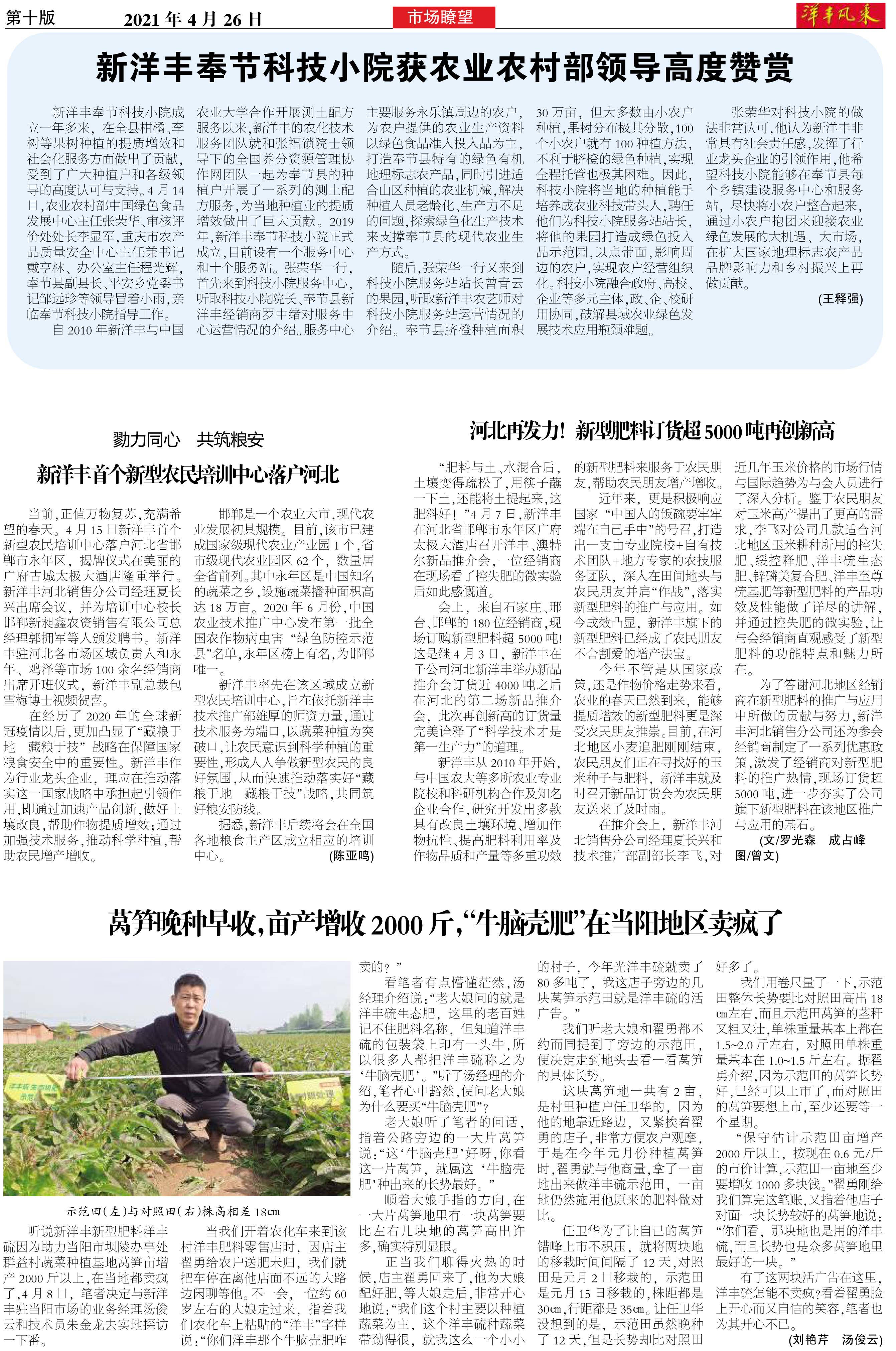 新洋丰奉节科技小院获农业农村部领导高度赞赏