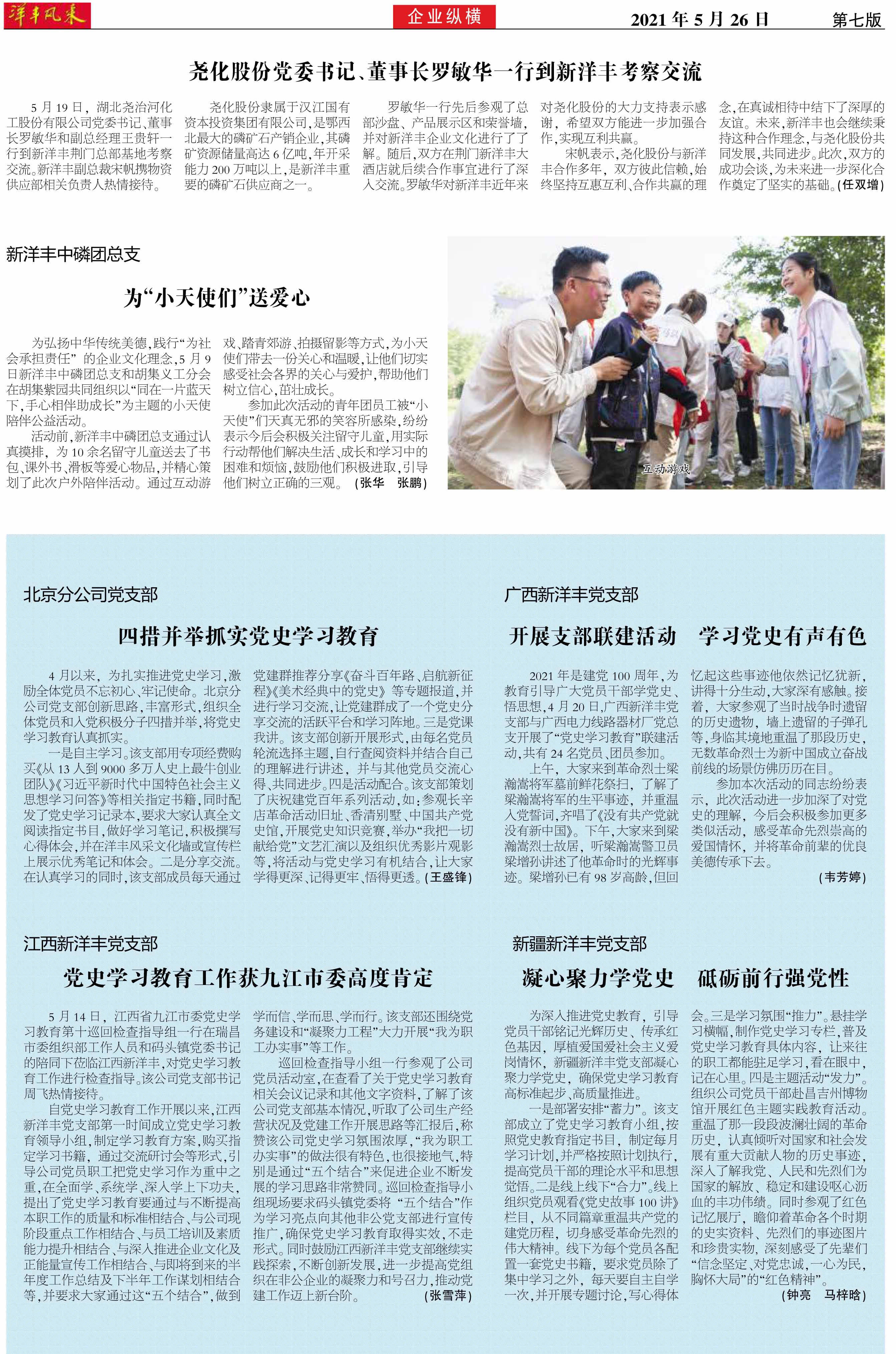 江西新洋丰党支部党史学习教育工作获九江市委高度肯定