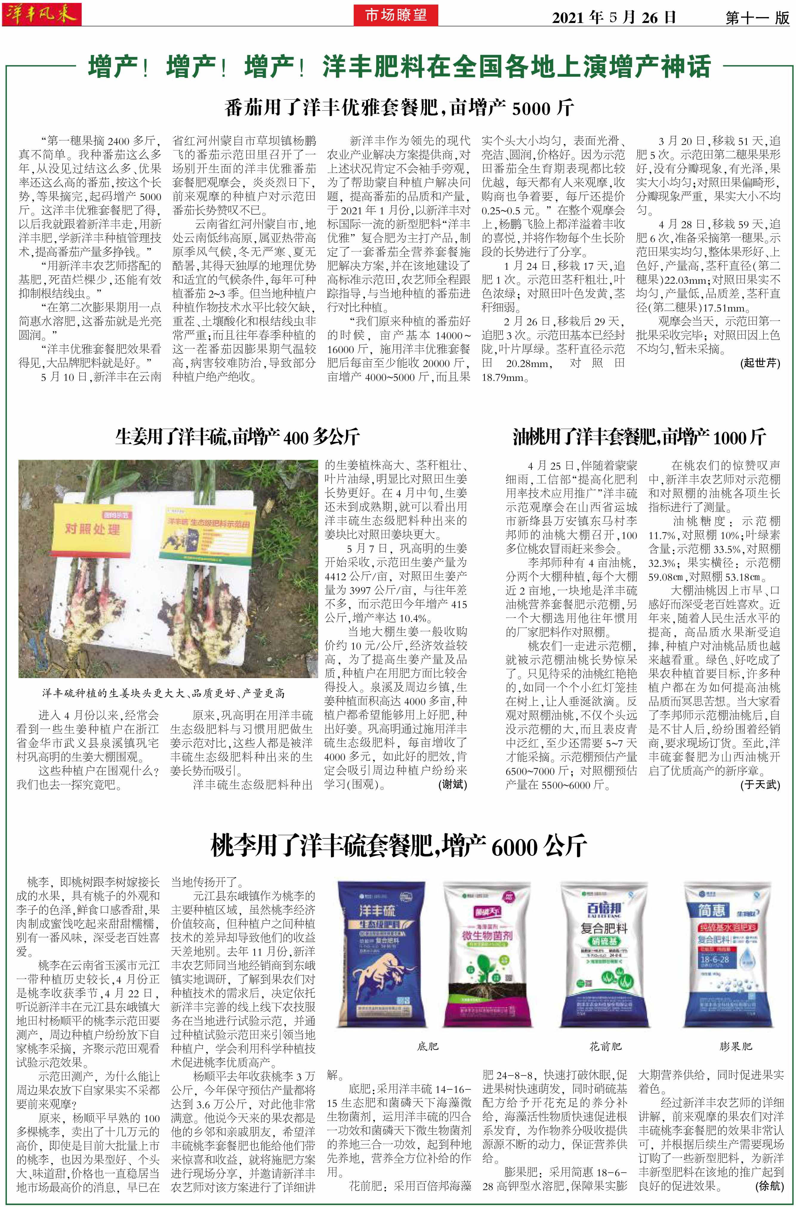 桃李用了洋丰硫套餐肥,增产6000公斤