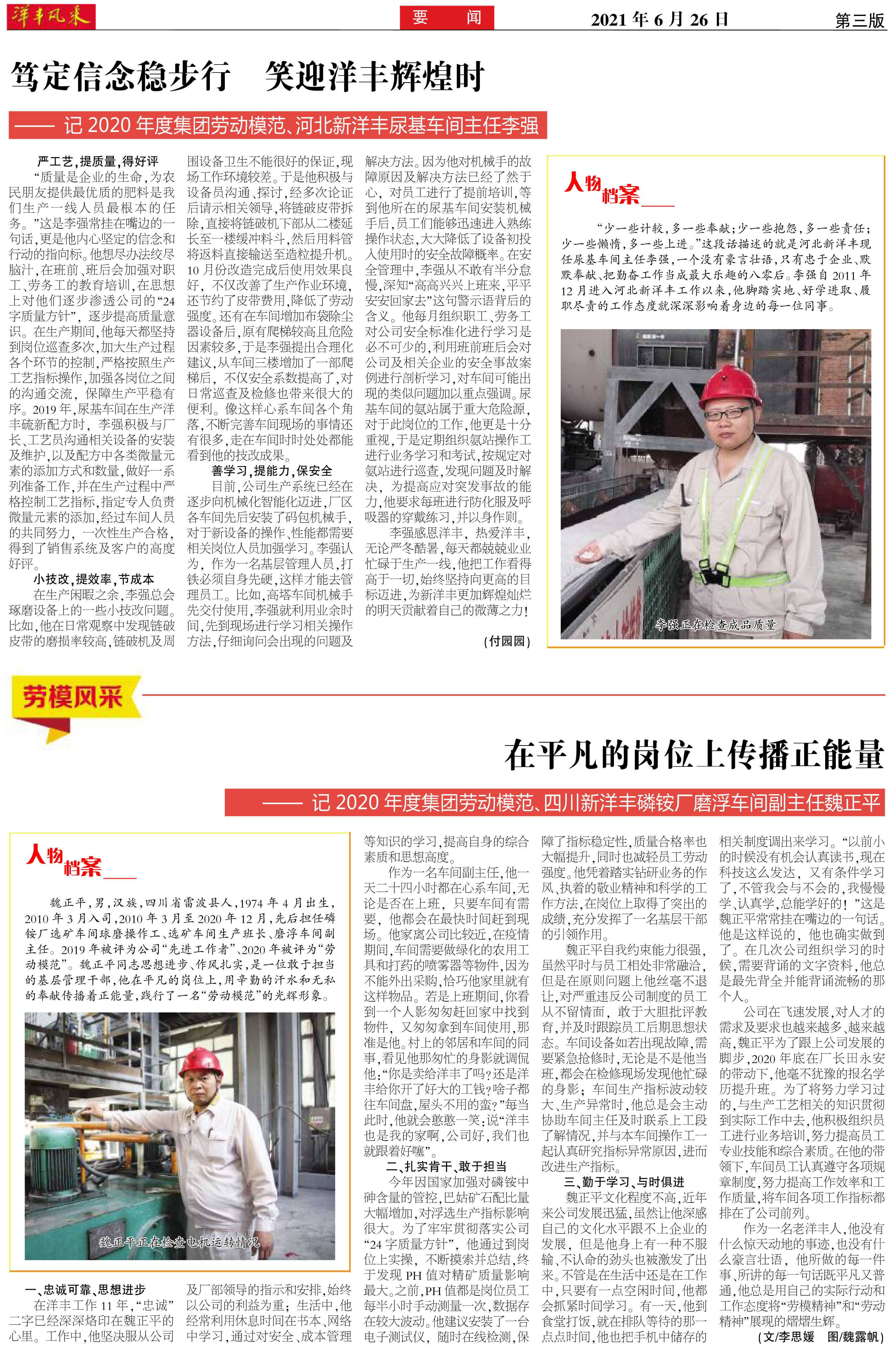 在平凡的岗位上传播正能量——记2020年度集团劳动模范、四川新洋丰磷铵厂磨浮车间副主任魏正平