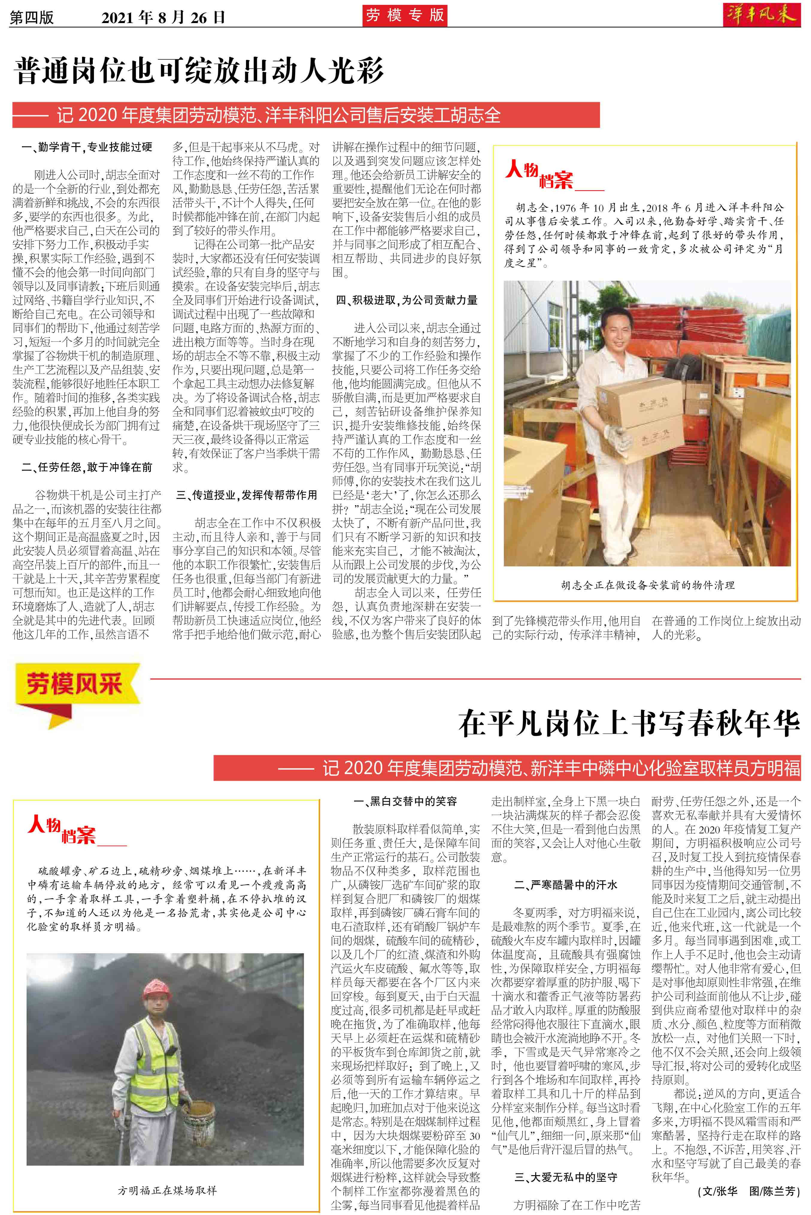 在平凡岗位上书写春秋年华——记2020年度集团劳动模范、新洋丰中磷中心化验室取样员方明福