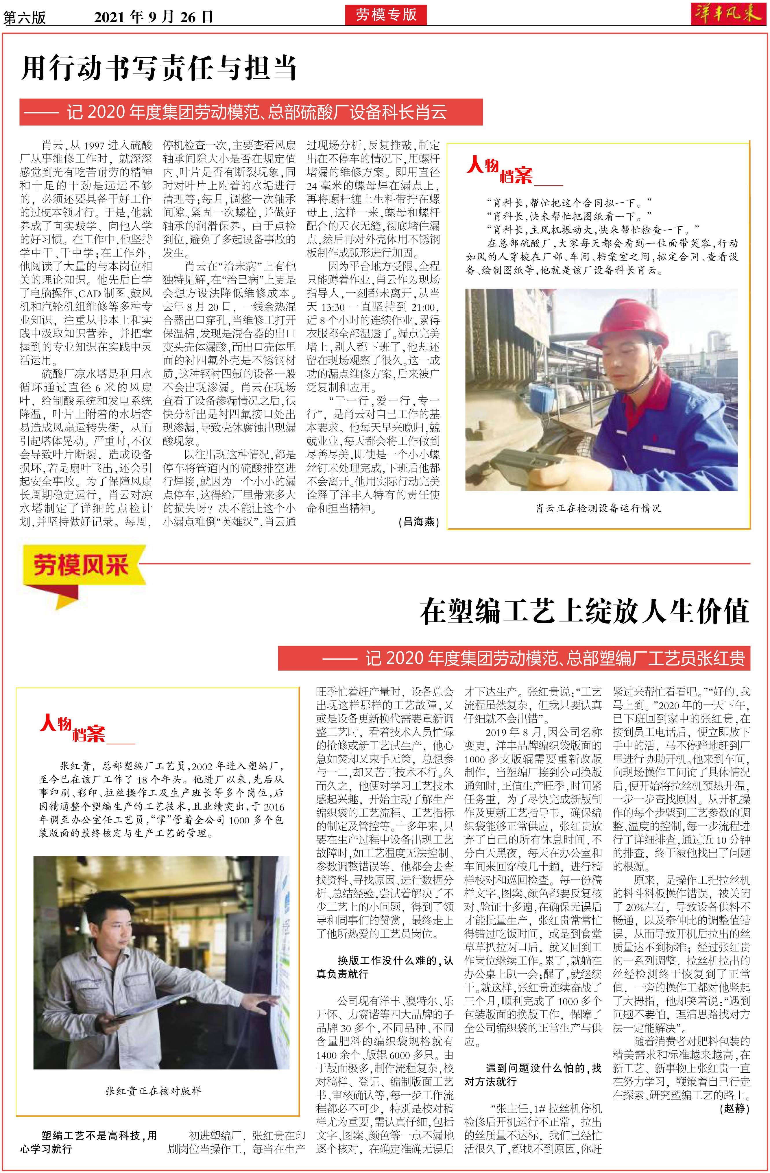 用行动书写责任与担当——记2020年度集团劳动模范、总部硫酸厂设备科长肖云