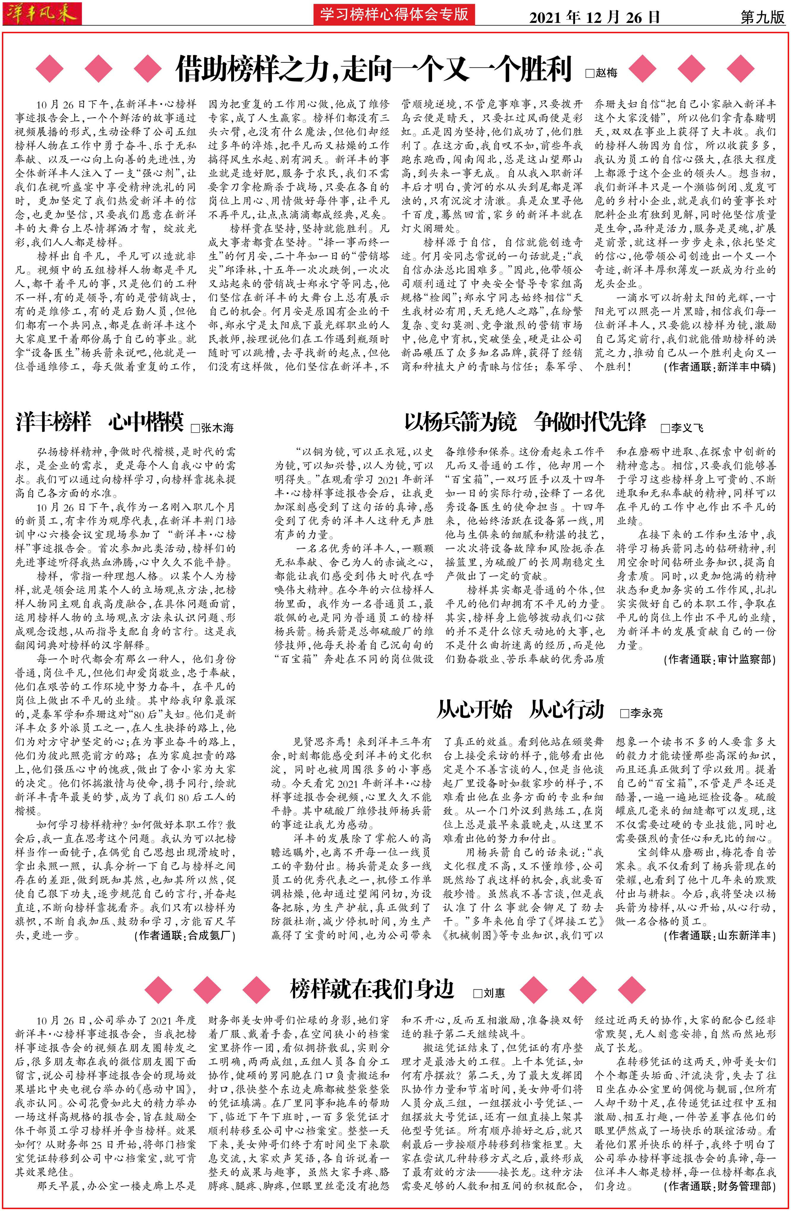 洋丰榜样 心中楷模