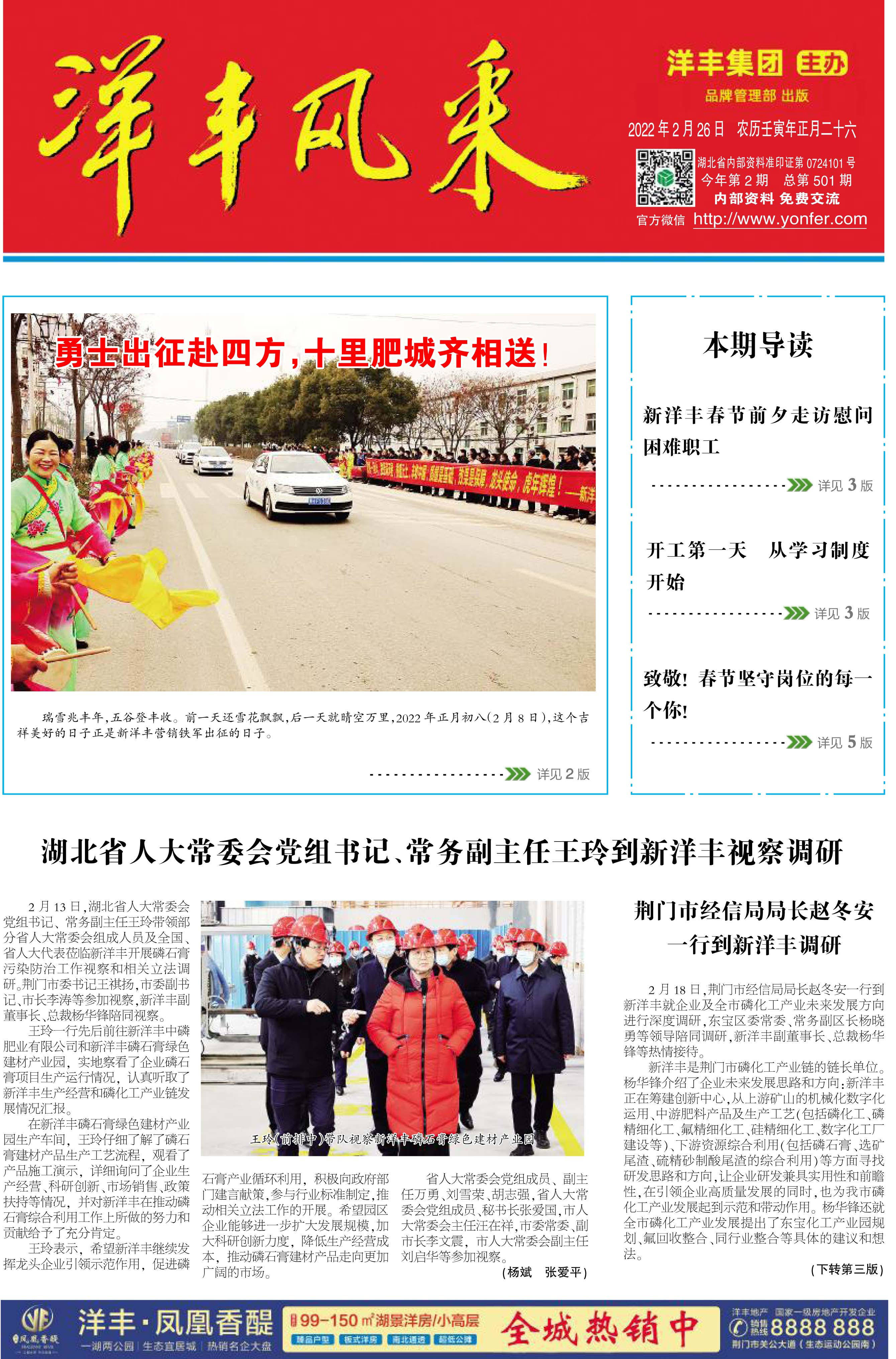 湖北省人大常委会党组书记、常务副主任王玲到新洋丰视察调研