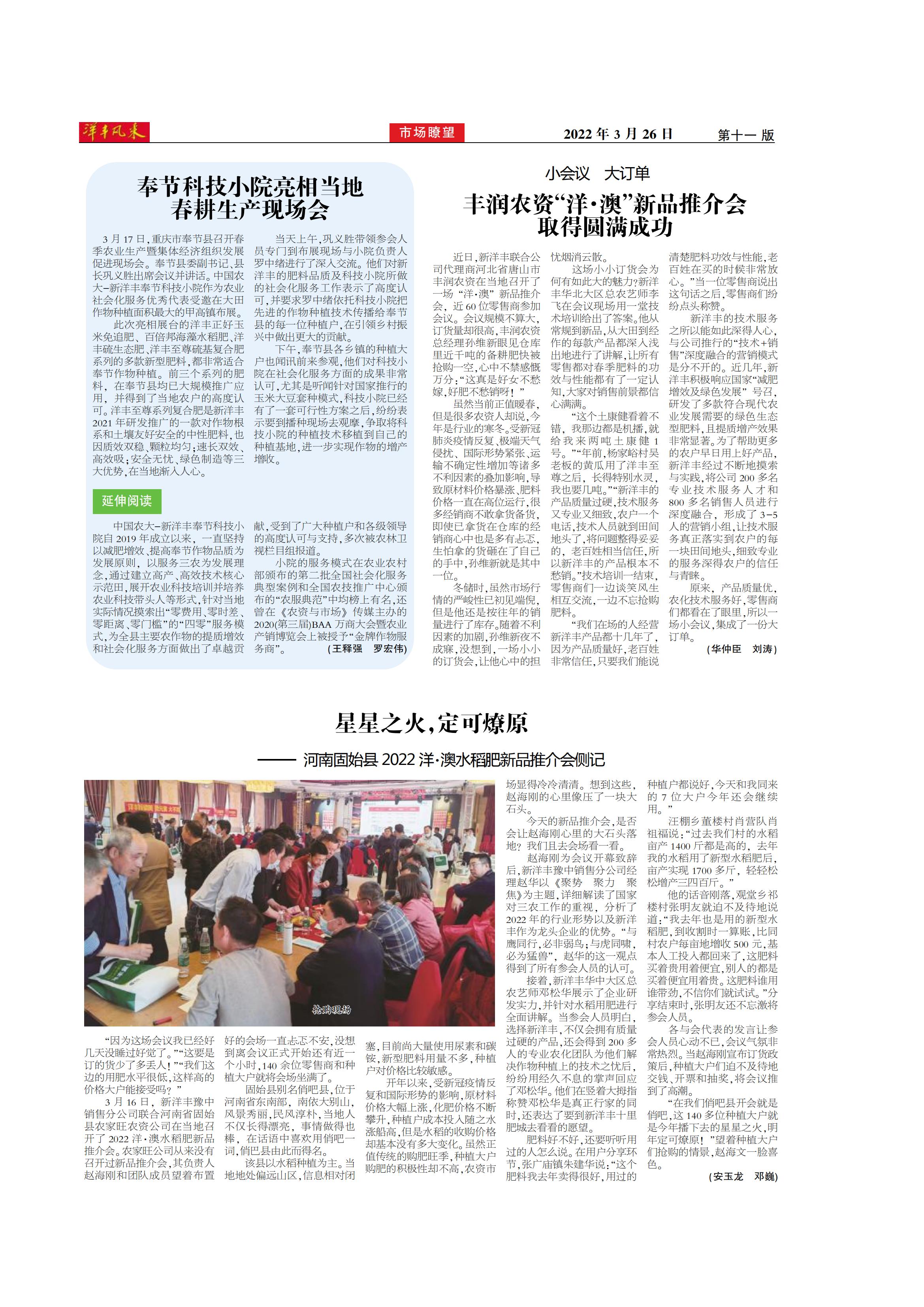 星星之火 定可燎原 ——河南固始县2022洋·澳水稻肥新品推介会侧记