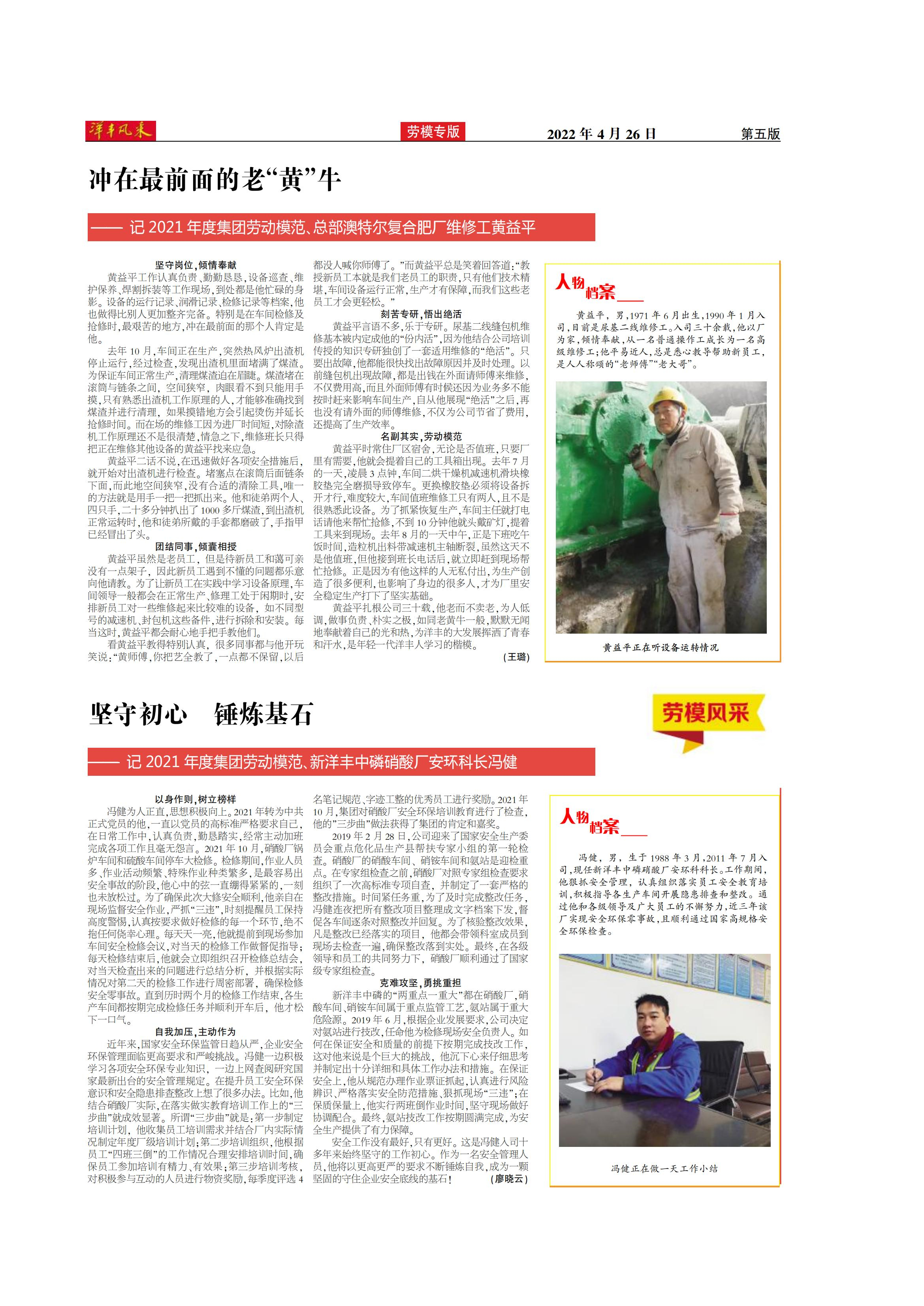 冲在最前面的老“黄”牛——记2021年度集团劳动模范、总部澳特尔复合肥厂维修工黄益平