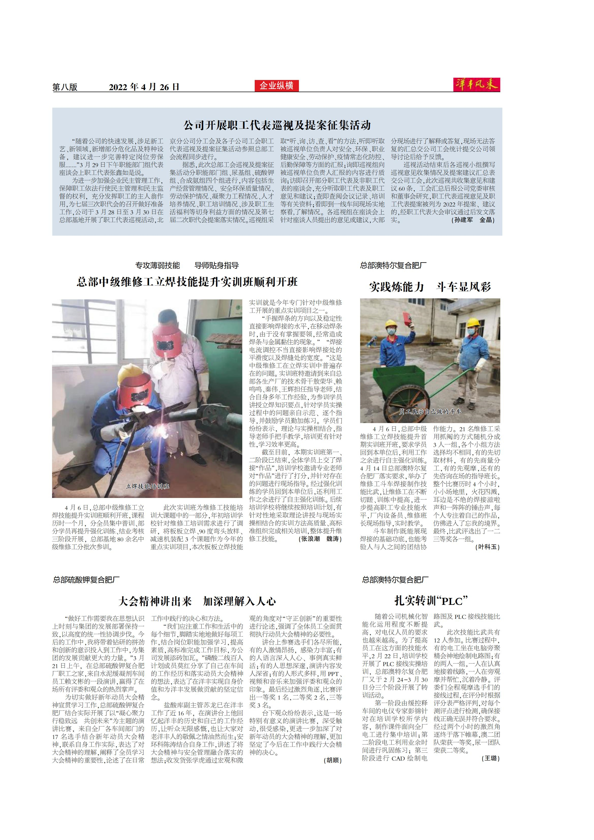 总部澳特尔复合肥厂 实践炼能力 斗车显风彩