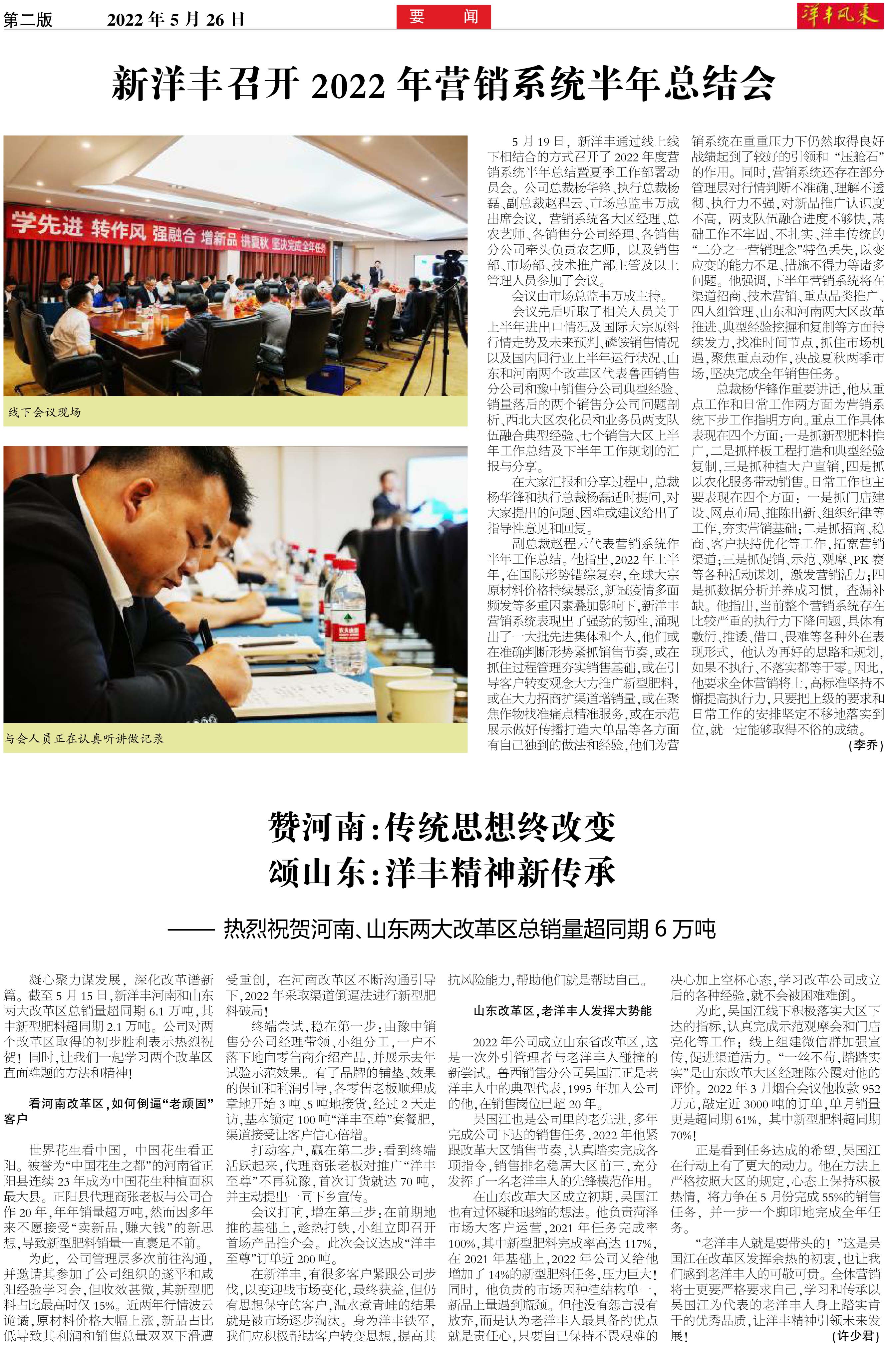赞河南:传统思想终改变 颂山东:洋丰精神新传承——热烈祝贺河南、山东两大改革区总销量超同期6万吨