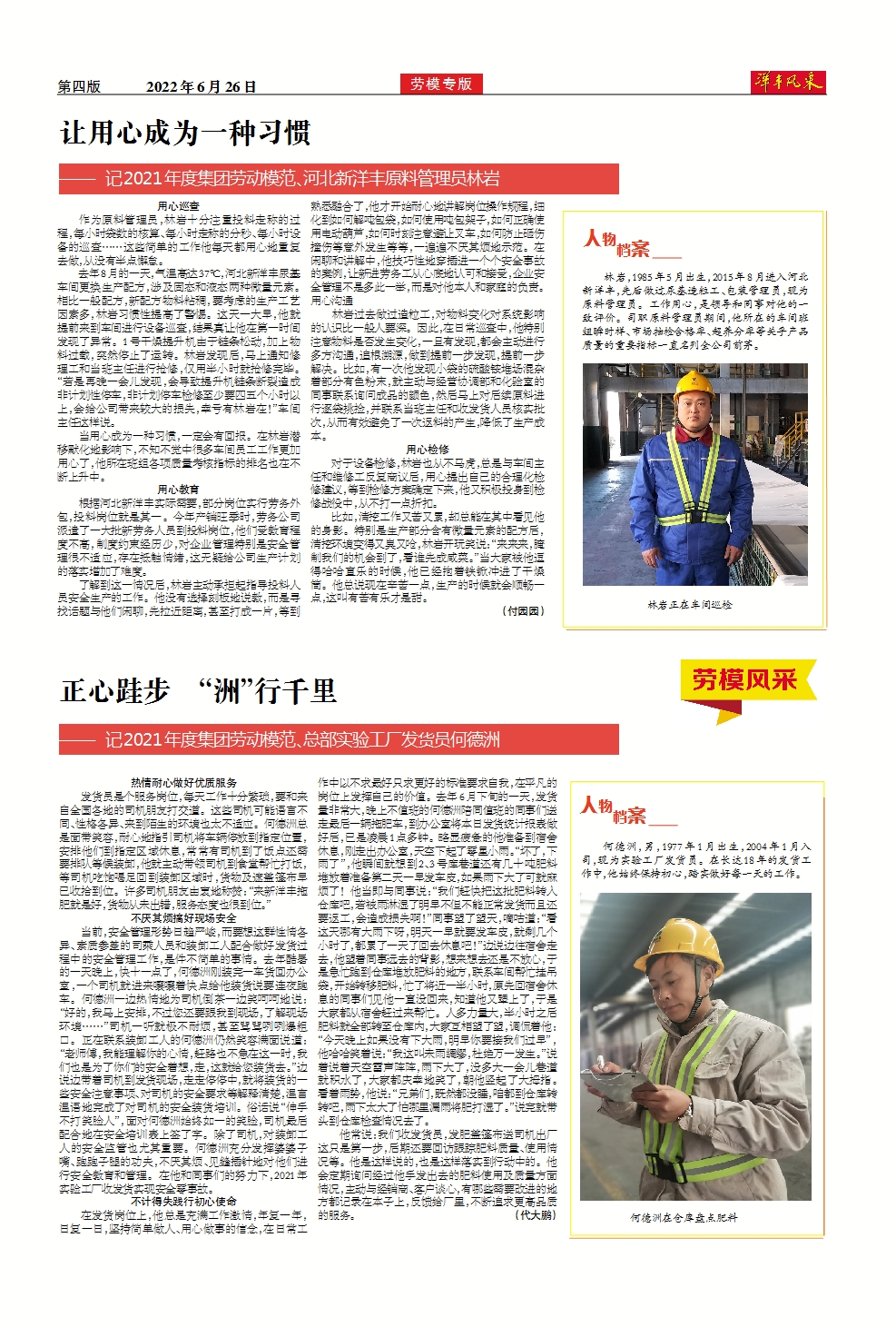 让用心成为一种习惯 ——记2021年度集团劳动模范、河北新洋丰原料管理员林岩