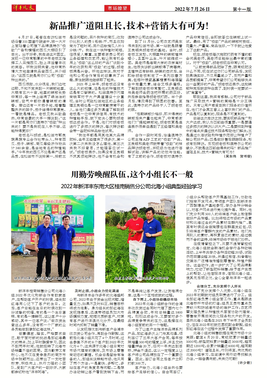 用勤劳唤醒队伍,这个小组长不一般——2022年新洋丰东南大区桂南销售分公司北海小组典型经验学习