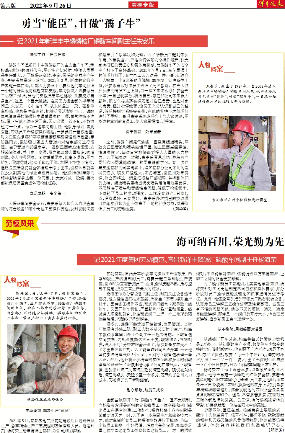 海可纳百川,荣光勤为先 ——记2021年度集团劳动模范、宜昌新洋丰磷铵厂磷酸车间副主任杨海荣