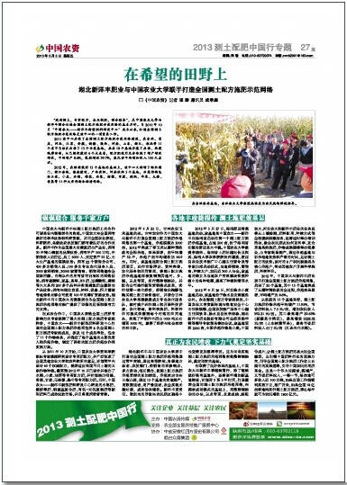 2012年,中国农大与新洋丰肥业联手打造全国测土配方施肥示范网络,启动了20个基地,其中15个基地完成了从播种到收获的全过程,示范效果显著,平均增产达8.6%。