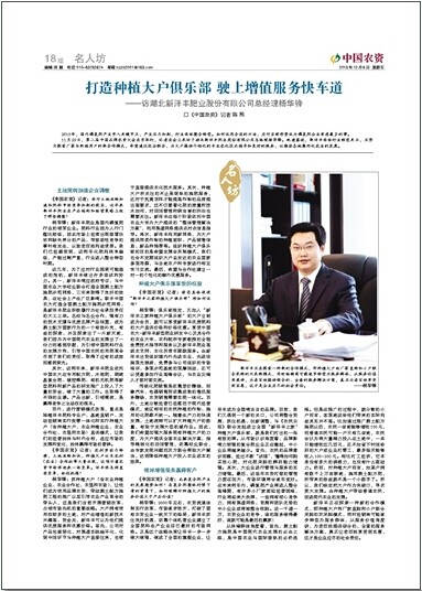 新洋丰正在探索一种新的合作模式,即种植大户向厂家直购和小户联合采购的双采购模式,同时经销商可能逐步转型为服务群体,从服务价值角度讲,为老百姓提供综合的、全套的服务解决方案,真正让老百姓享受到实惠,这才是企业应尽的社会责任。——杨华锋