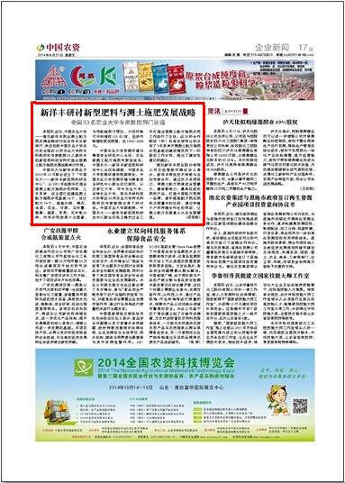 近日,中国农业大学--湖北新洋丰肥业测土配方肥发展战略研讨会在洋丰总部举行,来自包括中国农业大学在内的全国近20所农业大学和农科院所的专家教授33人就洋丰的新型肥料研发和打造全国测土配方施肥发展战略商讨对策。
