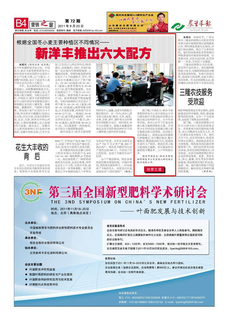在今年秋播即将开始之际,中国农大·新洋丰新型肥料研发中心组织资深专家共同研讨全国冬小麦主产区配方肥,以野大配方、小调整冶的思路,设计了适宜冬小麦不同生态分区的六大配方。