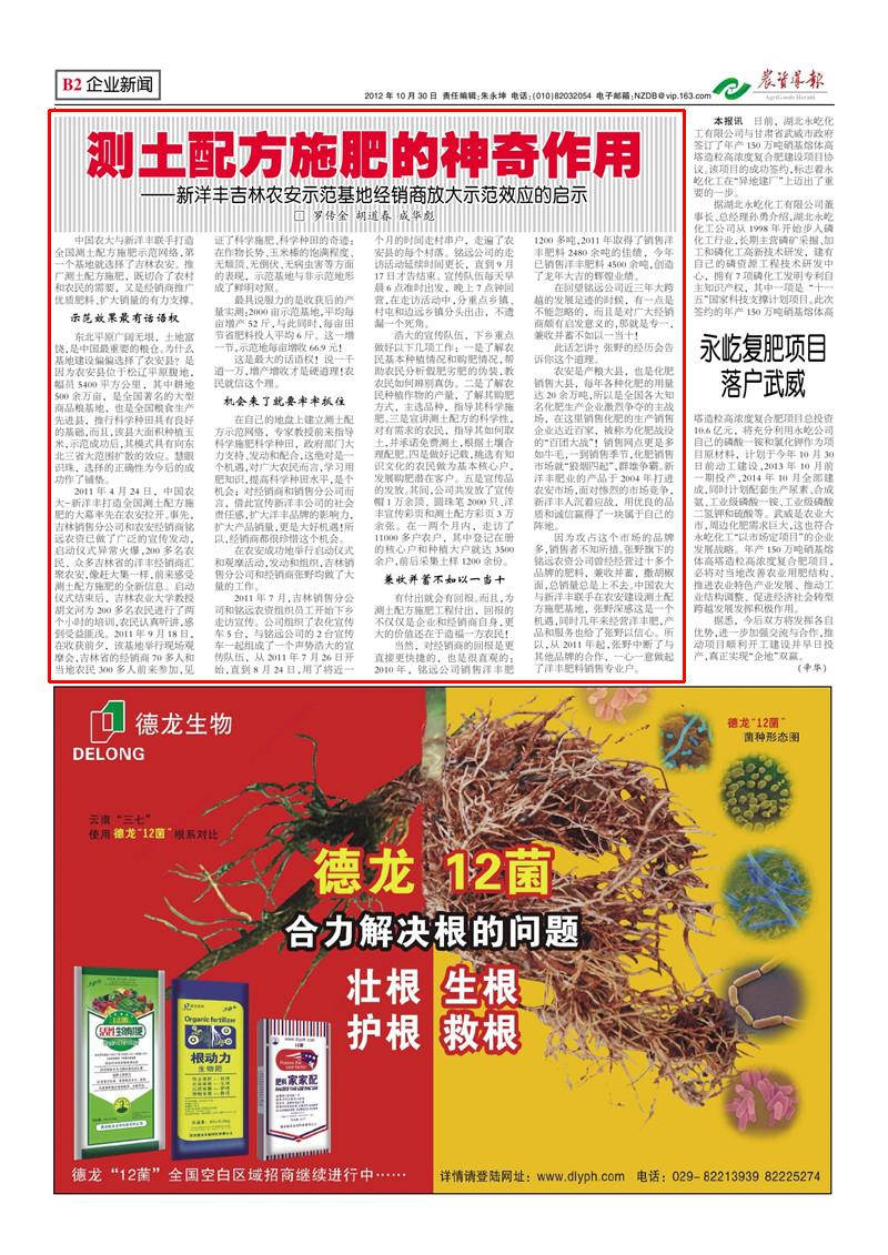 中国农大与新洋丰联手打造全国测土配方施肥示范网络,第一个基地就选择了吉林农安。推广测土配方施肥,既切合了农村和农民的需要,又是经销商推广优质肥料、扩大销量的有力支撑。