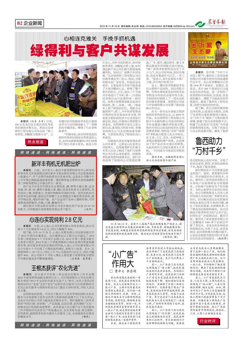 日前,由中农大-新洋丰新型肥料研发中心研发的新型有机无机复混肥在湖北新洋丰肥业股份有限公司总部基地投入批量生产,并于近期开始陆续发往各地市场。这是该公司继今年上半年推出硝硫基速溶速效肥、缓控释型复合肥和水溶性滴灌肥等三种新型肥料之后推出的又一新品。