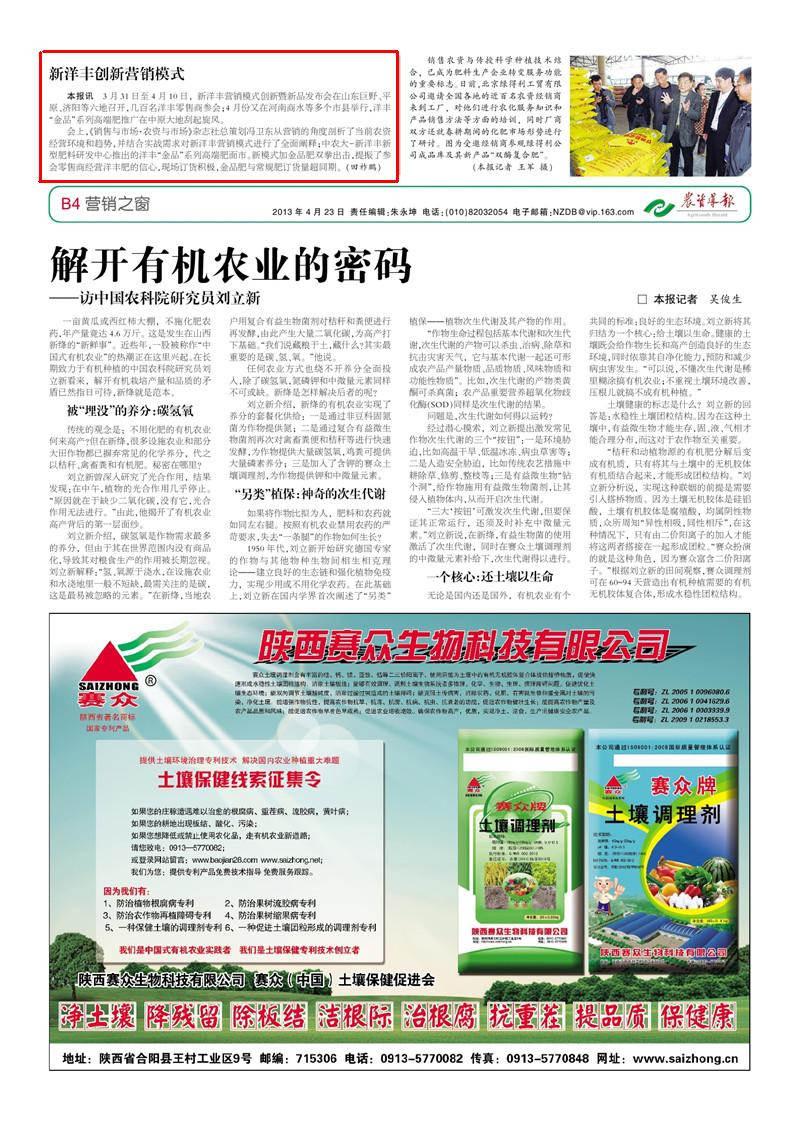 3月31日至4月10日,新洋丰营销模式创新暨新品发布会在山东巨野、平原、济阳等六地召开,几百名洋丰零售商参会曰4月份又在河南商水等多个市县举行,洋丰“金品”系列高端肥推广在中原大地刮起旋风。