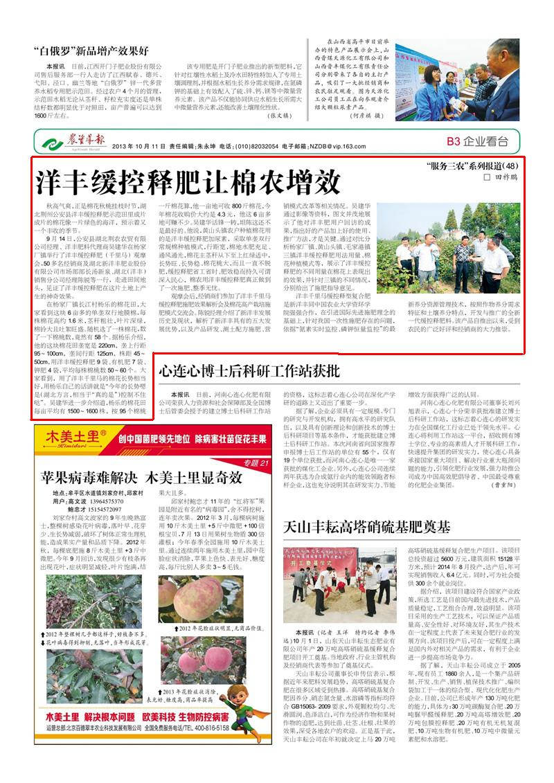 秋高气爽,正是棉花秋桃挂枝时节,湖北荆州公安县洋丰缓控释肥示范田里成片成片的棉花像一片绿色的海洋,预示着又一个丰收的季节。