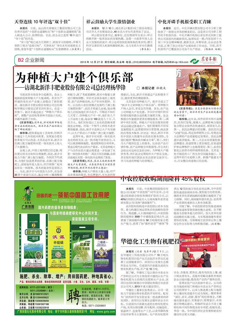 《农资导报》:在复合肥整体行情冷淡的大背景下,新洋丰对生产企业的发展趋势如何看?