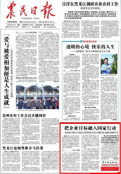 “测土配方施肥是保障中国农业可持续发展的关键战略,作为肥料行业的旗舰企业,必须要在其中担当自己的责任,把企业目标与使命融入国家战略之中”