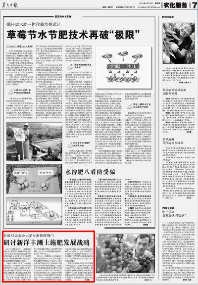 近日,中国农业大学--湖北新洋丰肥业测土配方肥发展战略研讨会在洋丰(荆门)举行,来自包括中国农业大学在内的全国近20所农业大学的专家教授33人就洋丰的新型肥料研发和打造全国测土配方施肥发展战略商讨对策。