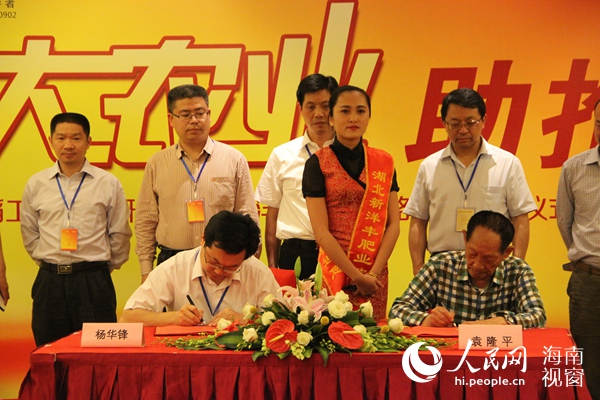 人民网海南视窗三亚4月2日电 4月2日,湖北新洋丰肥业与国家杂交水稻工程技术研究中心达成战略合作,在三亚正式签约,中国工程院院士袁隆平被聘为新洋丰肥业特别顾问,新洋丰肥业总经理杨华锋向袁隆平颁发了聘书。