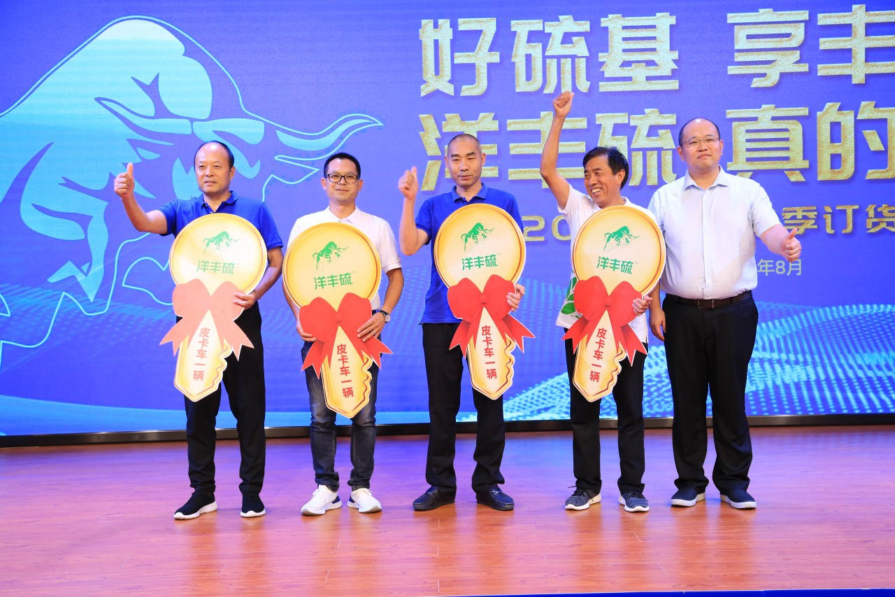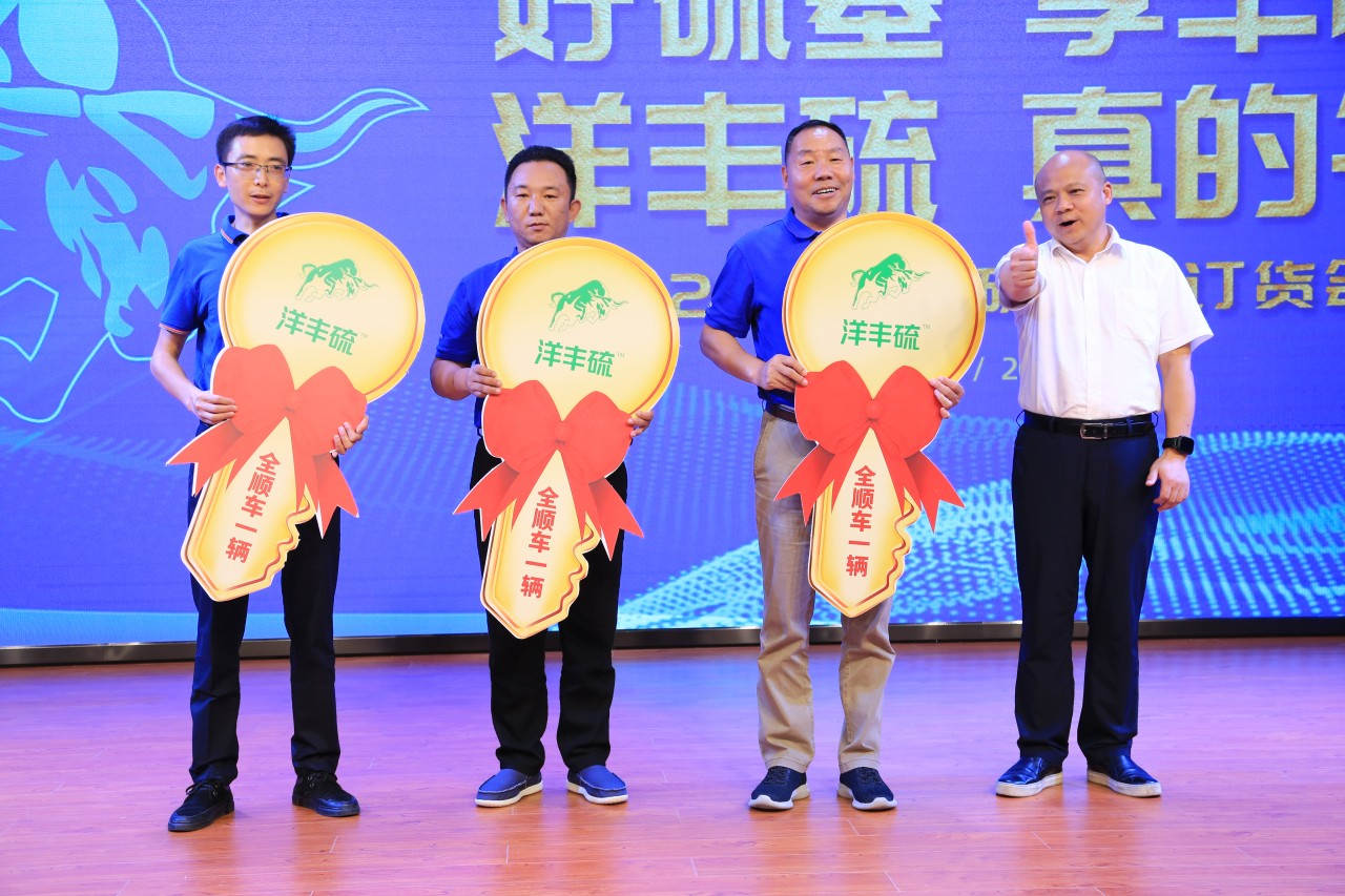 会上,新洋丰对过去一年在营销推广方面成绩卓越的优秀经销商进行了现场表彰,一辆辆全顺车、皮卡车等奖品送给他们,激励更多优秀经销商一起,努力使洋丰硫为更多的种植户所认识和喜欢,也为广大农民增产增收、农业生态绿色发展贡献更多力量。