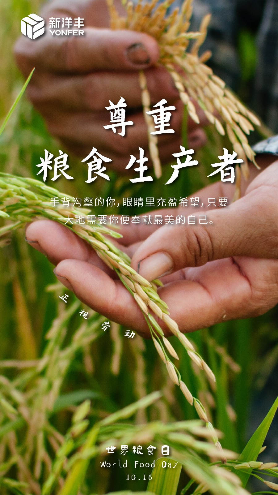 新洋丰的使命是“服务三农、惠泽四方”,我们希望能够通过自身在产品、技术、营销、服务上的持续创新,推动农业发展与乡村振兴,真正做到“守护青山绿水、丰盈天下粮仓”!新洋丰在此倡议业内同仁,让我们自觉践行“创新、协调、绿色、共享”的发展理念,以肥料绿色生产、绿色流通、绿色施用为使命,一起“端牢中国饭碗,共筑全球粮安”!