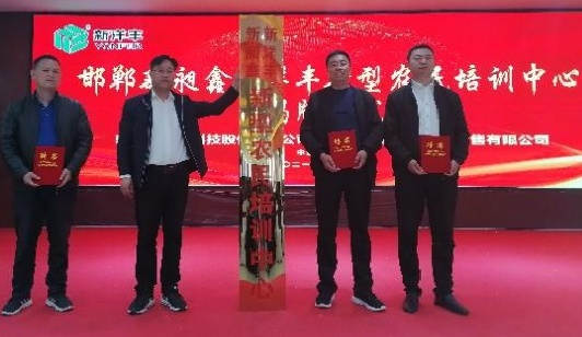 4月15日,在万物复苏,充满希望的春天,新洋丰首个新型农民培训中心落子河北省邯郸市永年区,揭牌仪式在美丽的广府古城太极大酒店隆重举行。新洋丰河北销售分公司经理夏长兴出席会议,并为培训中心校长邯郸新昶鑫农资销售有限公司总经理郭拥军等人颁发聘书。新洋丰驻河北各市场区域负责人和永年、鸡泽等市场100余名经销商出席开班仪式,新洋丰副总裁包雪梅博士视频贺喜。