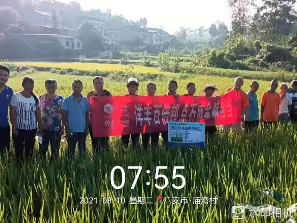 示范田的高产量,着实让人惊艳,观摩人员在听了新洋丰技术员对百倍邦海藻肥功效与性能后的讲解后,都竖着大拇指说:“川东稻花香,功臣百倍邦!”
