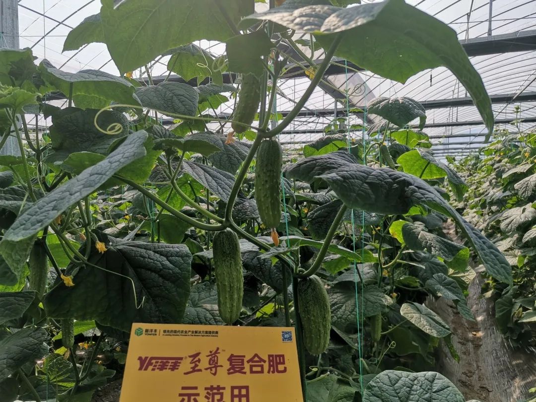 3月上旬开始,气温逐渐上升。示范棚后期全程采用福根多和洋丰至尊进行滴灌,至3月底,示范大棚已陆续采收黄瓜,叶片浓绿,节间更短。而对照大棚,黄瓜叶片发黄,节间长,结瓜少。